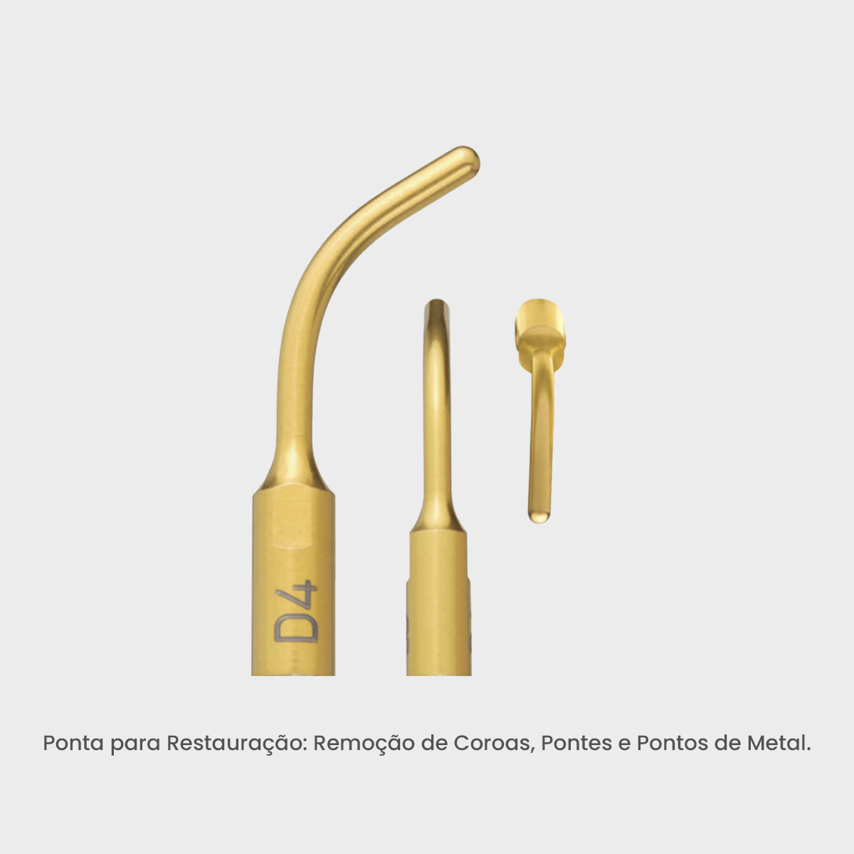 A ponta clínica Mectron D4 possui extremidade é arredondada e grossa , por isso, é perfeita para remoção de coroas, pontes e pontos de metal.