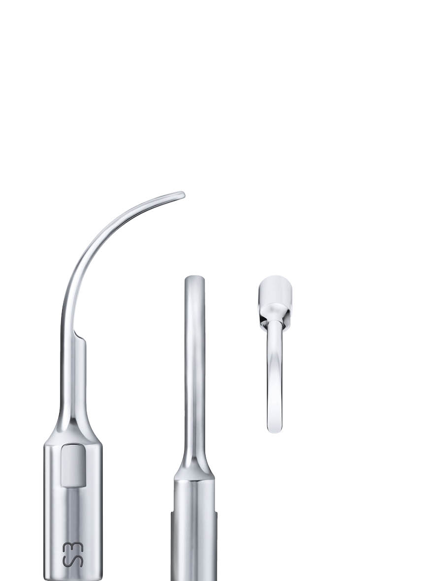 Com as pontas clínicas da Mectron você tem muito mais eficiência do que os raspadores de tártaro convencionais. Além disso, a ponta clínica S3 tem a geometria perfeita para diminuir a fadiga do dentista.