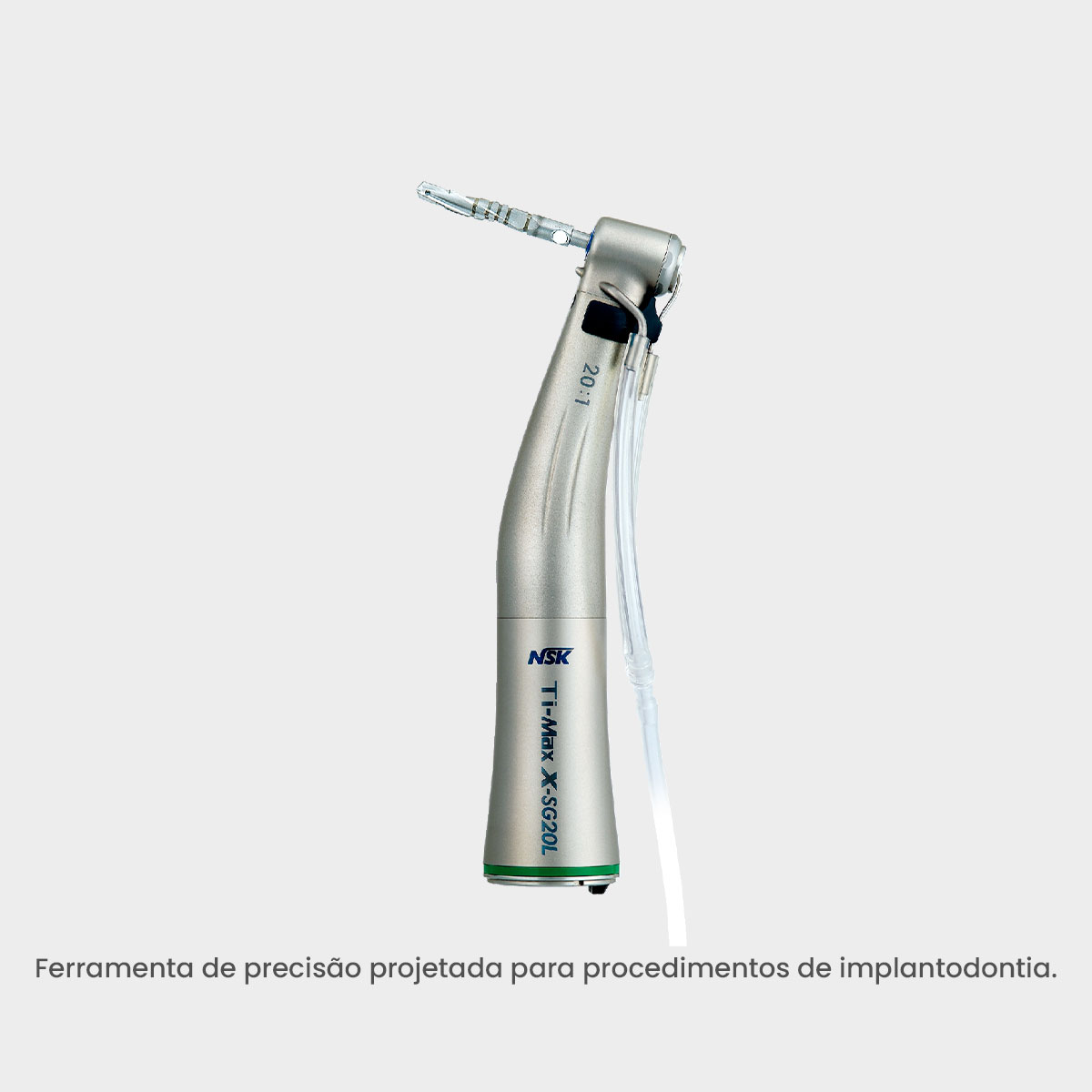 O Contra ângulo TI-MAX NSK é um equipamento redutor com corpo em titânio, além disso possui luz.