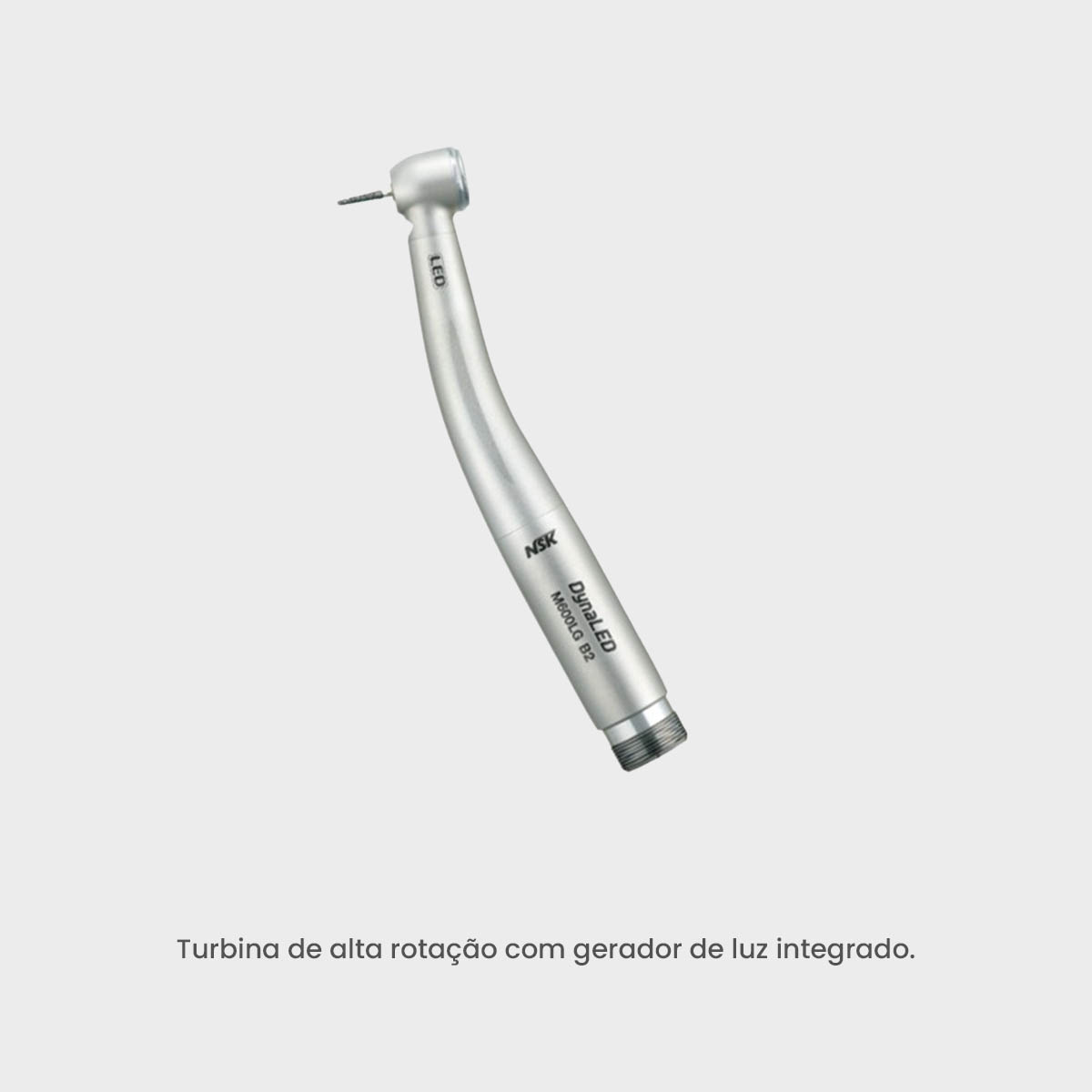 A DynaLED é uma turbina de alta rotação, muito similar à Pana-Max PLUS. Ela é indicada para procedimentos clínicos, como profilaxia, remoção de cáries, preparação de cavidades e coroas, além de acabamentos de preparo.