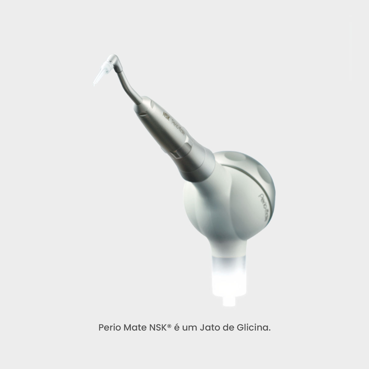O Perio Mate NSK® é um Jato de Glicina de alta qualidade que auxilia nos procedimentos de profilaxia sub gengivais, como tratamento de bolsas periodontais ou em superfícies de implantes e componentes.