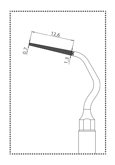Esta ponta faz parte do Resective Perio Kit, para aumento de coroa, debridamento radicular e osteoplastia em regiões interproximais. Este kit é composto por cinco pontas com espessura diferentes, para um cirurgia completa, menos cansativa e com acesso facilitado em toda região da boca.