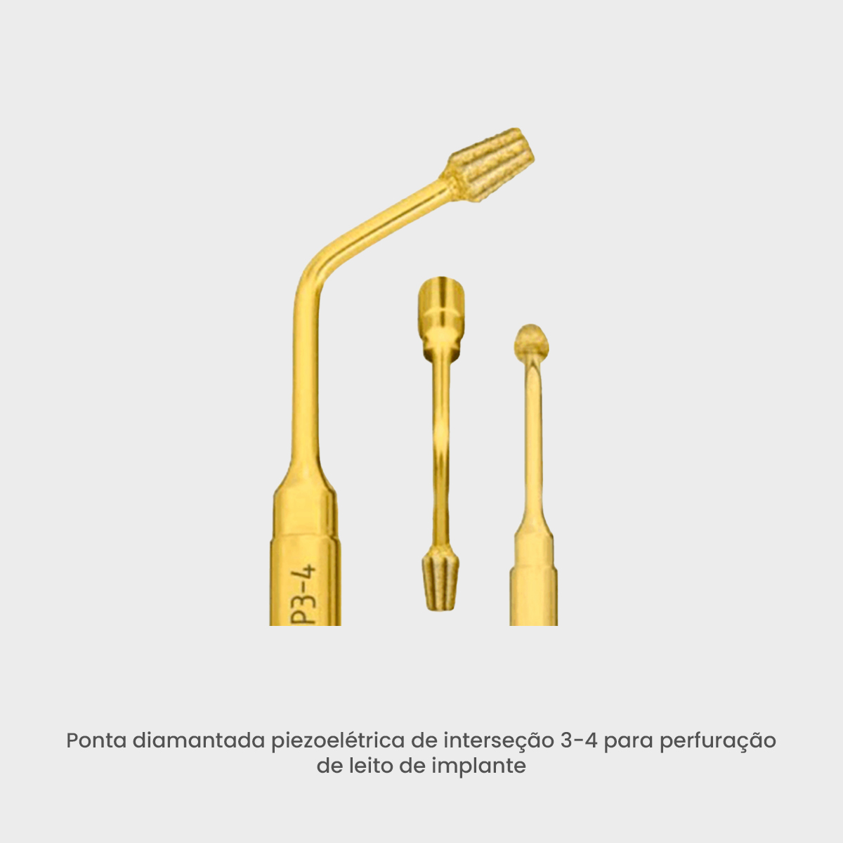 Ponta diamantada piezoelétrica de interseção 3-4 para perfuração de leito de implante.